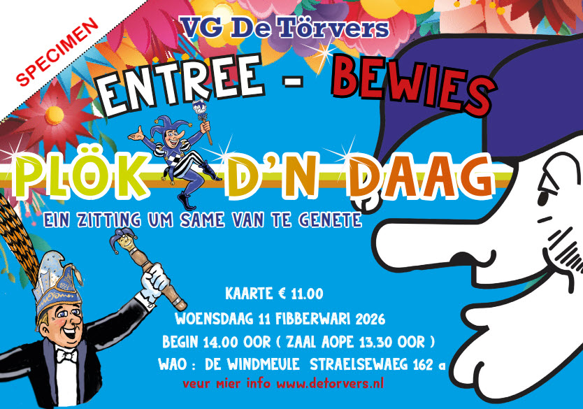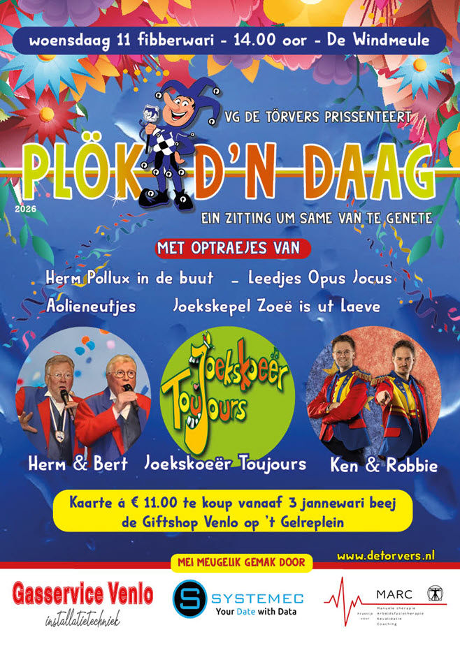 Op 11 fibberwari, De Plök d’n Daag zitting, veur minse die neet mier de gansen tied kinne staon.